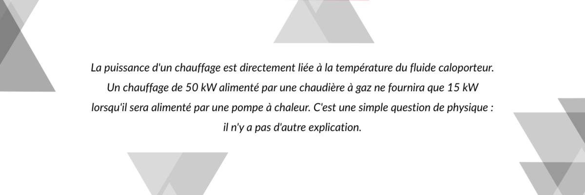 - Piège de la pompe à chaleur : ancienne installation + générateur basse température = chute drastique de puissance si l’échangeur n’est pas redimensionné (2 ou 3 rangées).